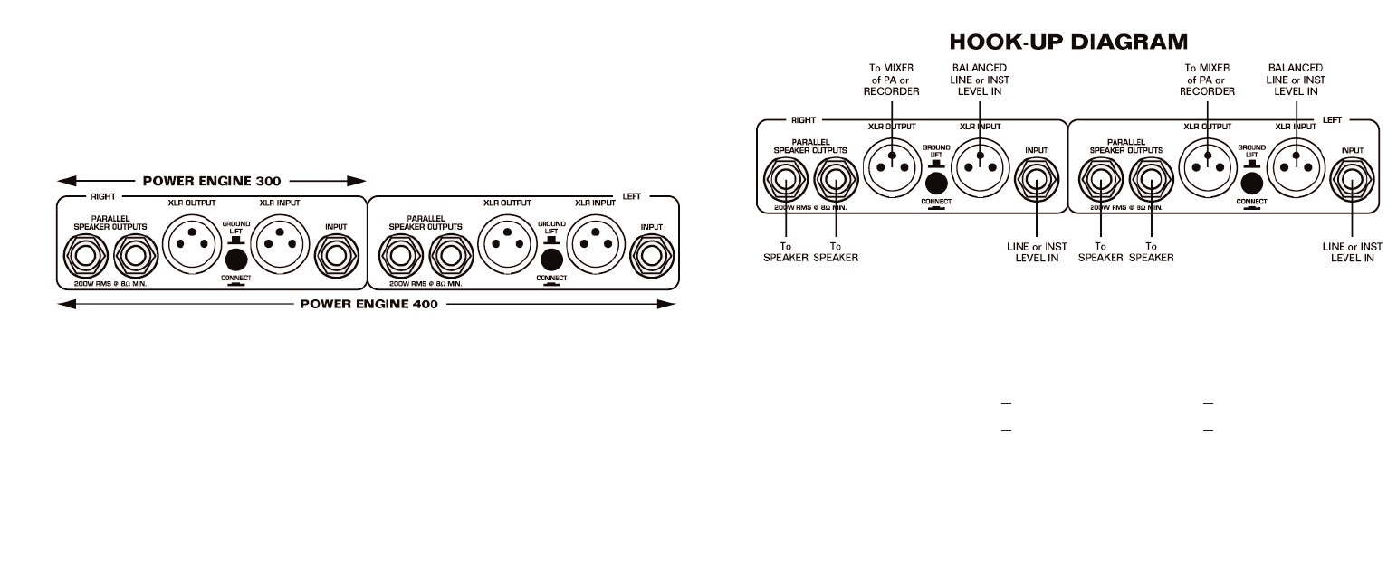 1/4” speaker jacks. NOTE: Turn off Power Engine before connecting your speakers.