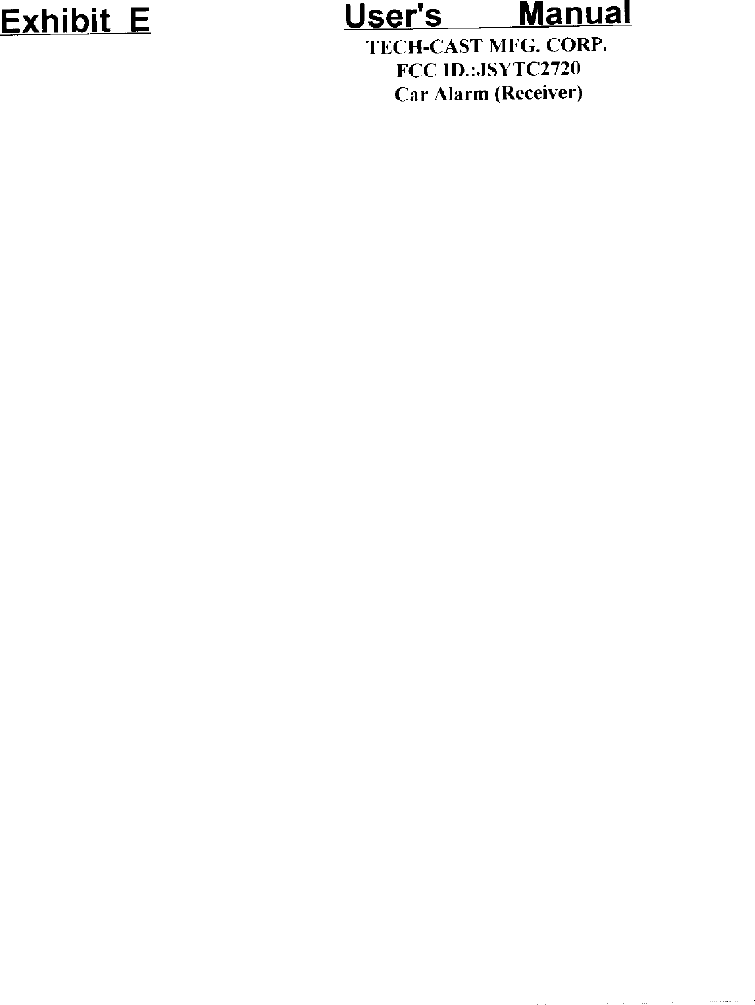 TECH CAST MFG TC2720 User Manual 46940