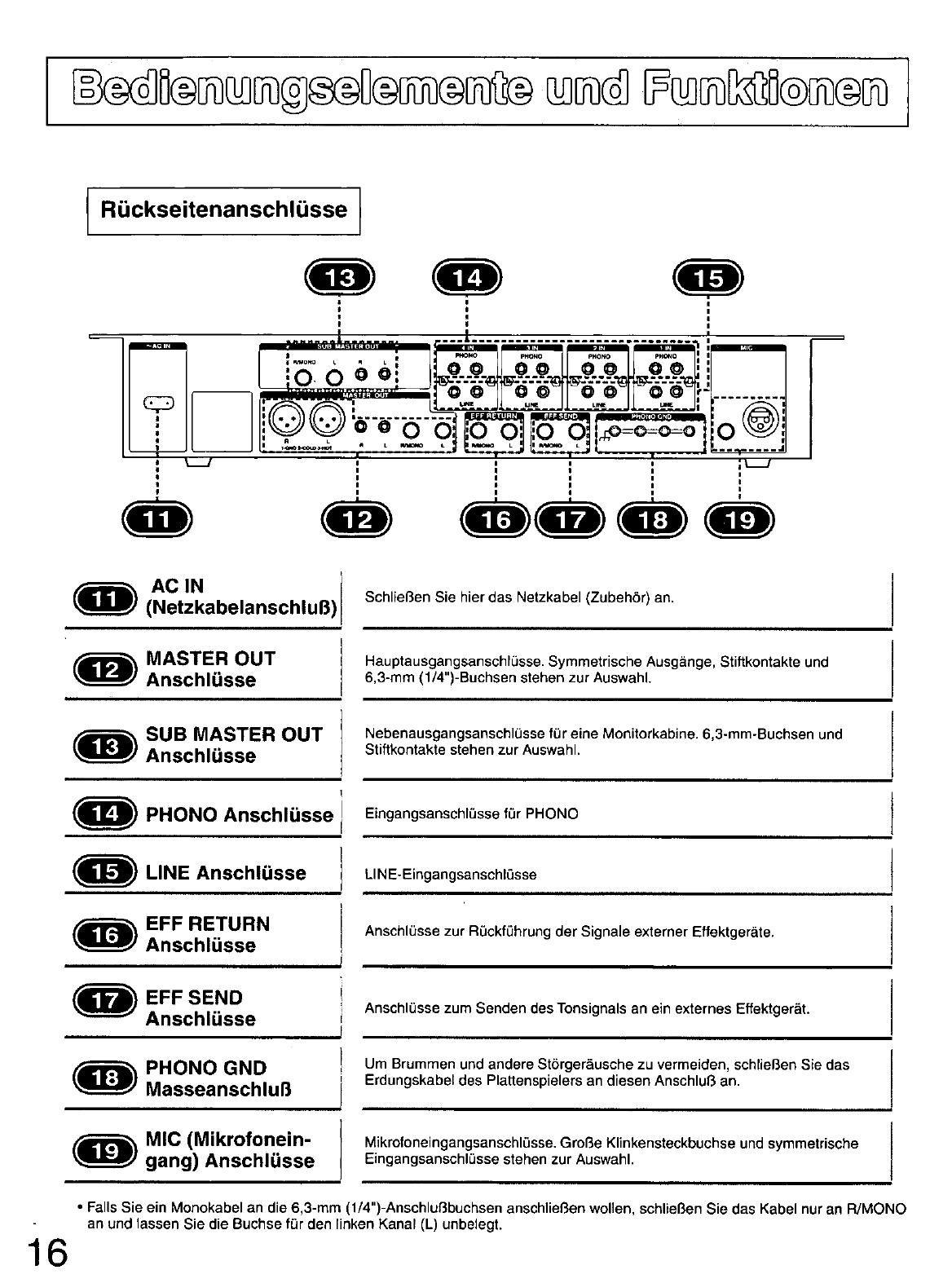 - BEDIENUNGSELEMENTE UND FUNKTIONEN (RUCKSEITENANSCHLUSSE)