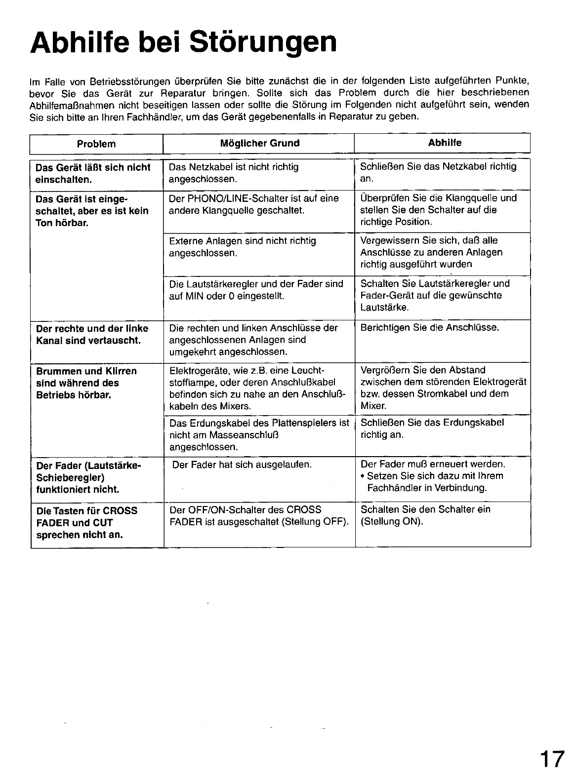 - ABHILFE BEI STORUNGEN