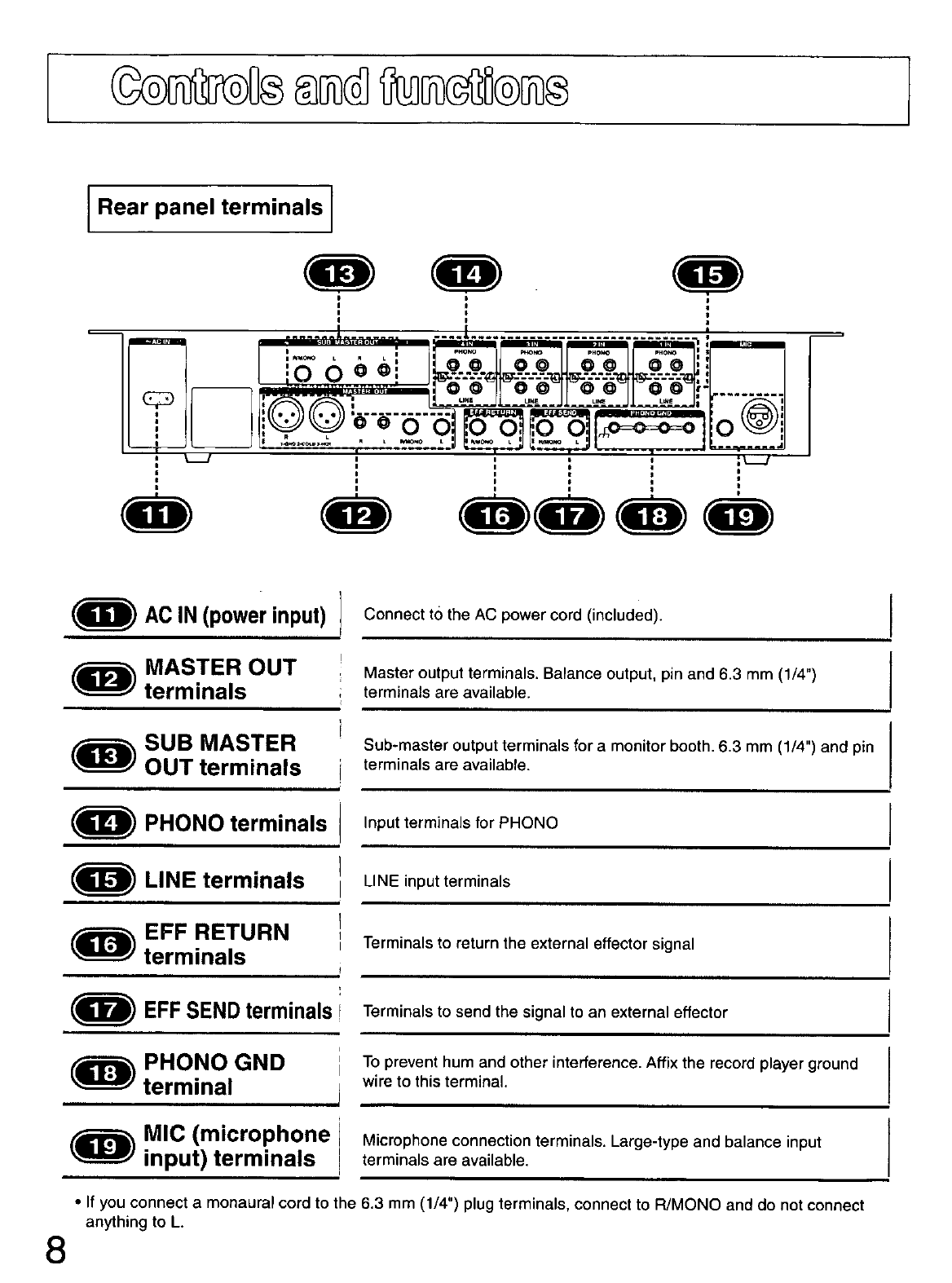 - CONTROLS AND FUNCTIONS (REAR PANEL TERMINALS)
