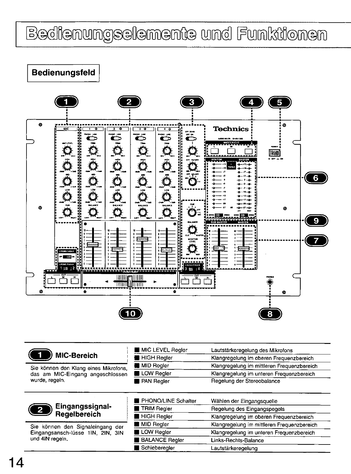 - BEDIENUNGSELEMENTE UND FUNKTIONEN (BEDIENUNGSFELD)