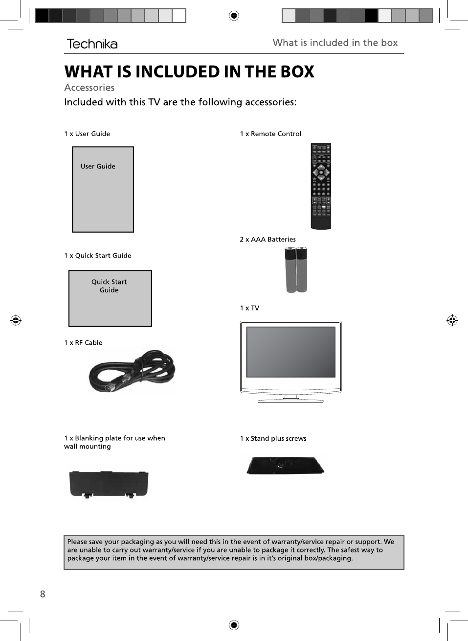 You will need original box/packaging in the event of warranty/service repair or support. We are unable •