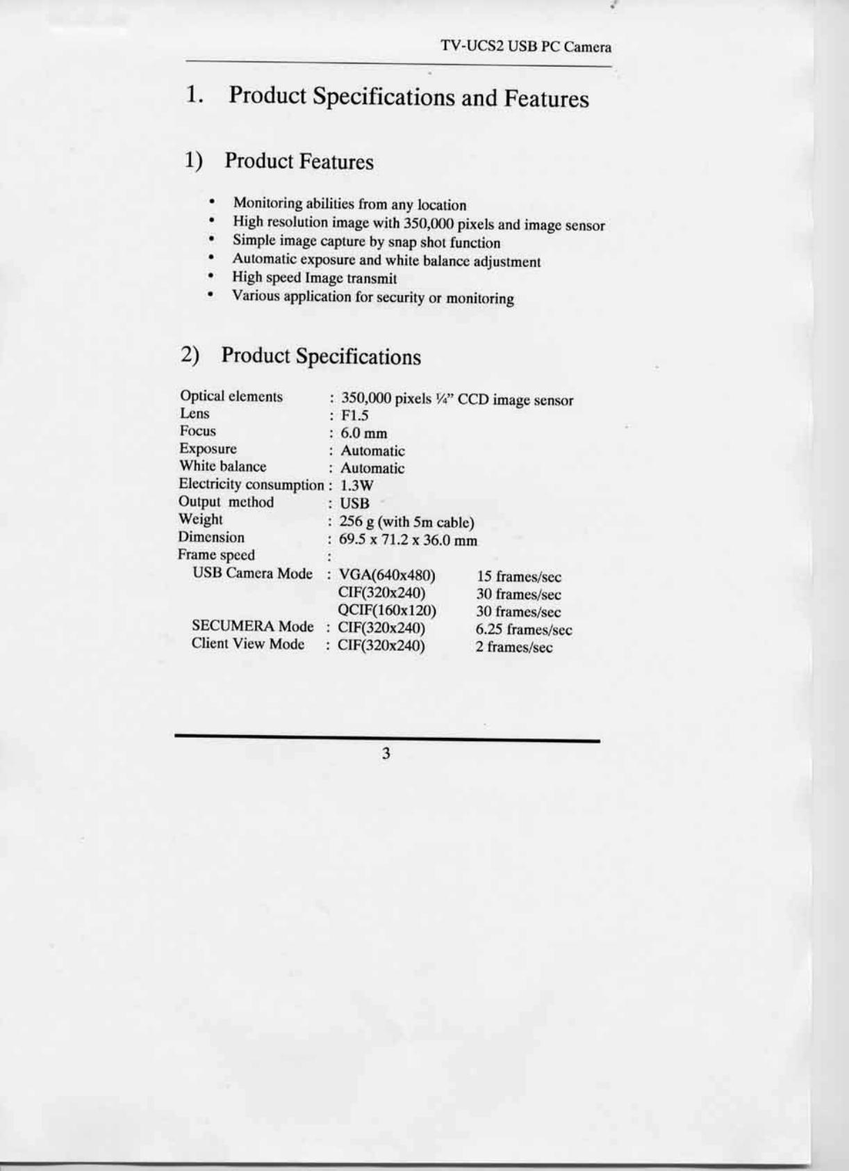 TechnoVision TV-UCS2 USB Digital PC Camera User Manual