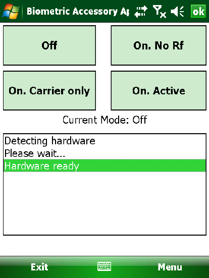 the presence of the hardware. Once detected the mode buttons are enabled.