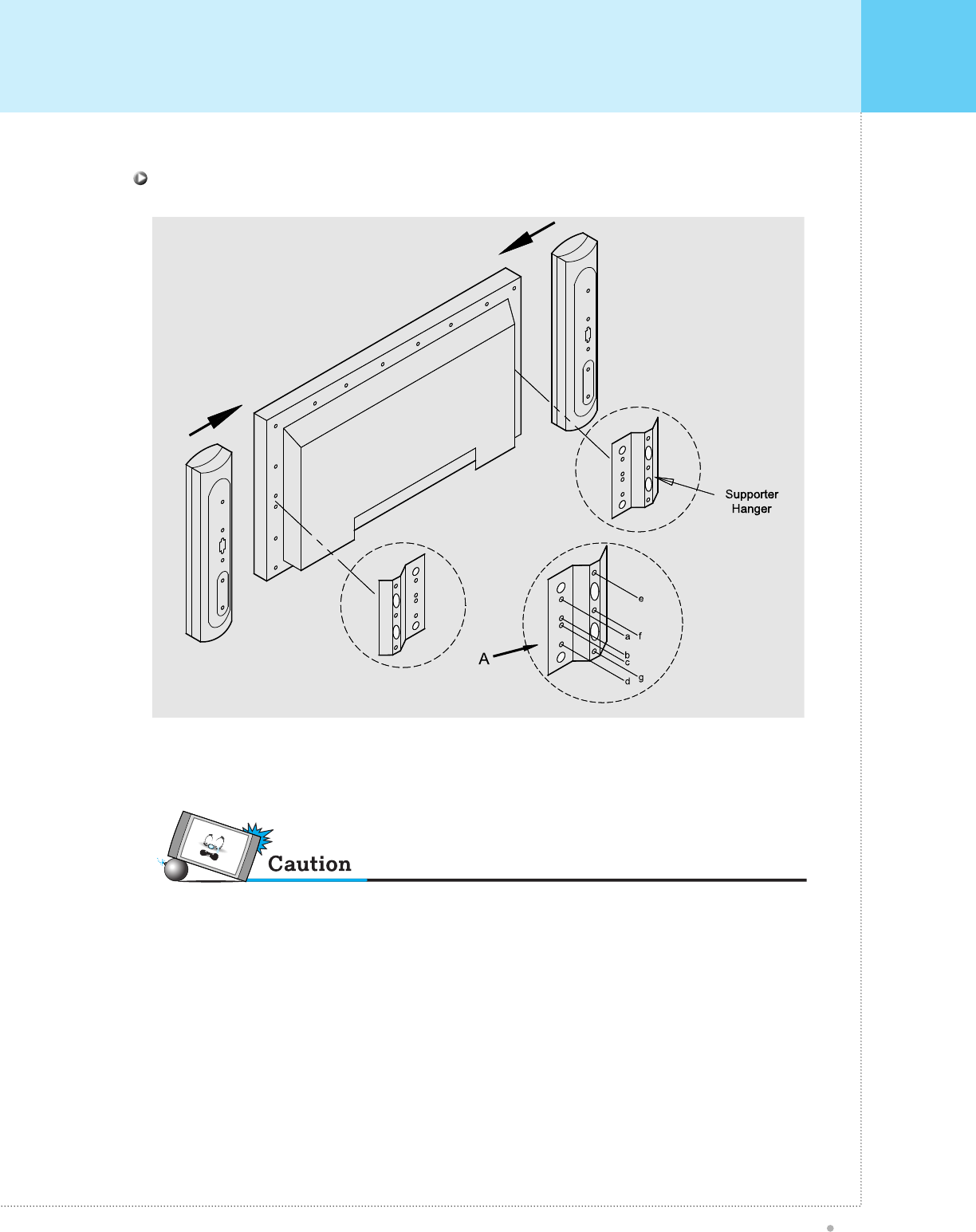 supporter hanger to the monitor using the bolt(M4x8). Assemble the c, d and e to the speaker using the