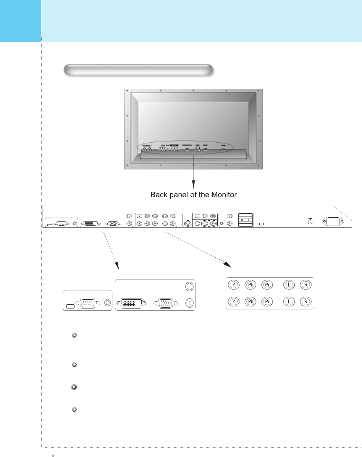 • Turn off monitor power before making any connec tions .