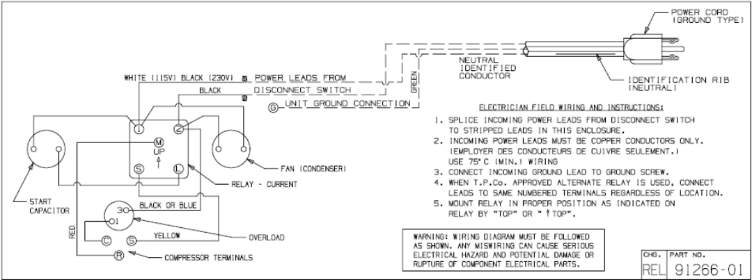 Factory charge: 20 PSIG Nitrogen – MUST BE EVACUATED