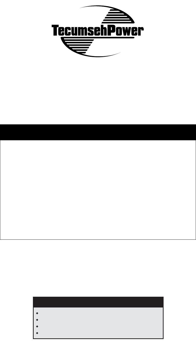 PERFORMED BY A TECUMSEHPOWER AUTHORIZED SERVICE OUTLET. Warranty service can be arranged by contacting a TecumsehPower Authorized Service