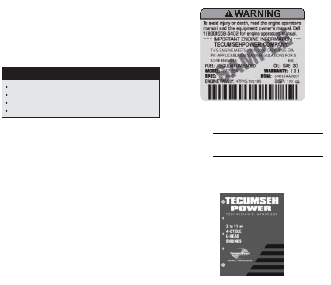 Engine Information” decal located on the engine housing or an addendum decal affixed adjacent thereto.
