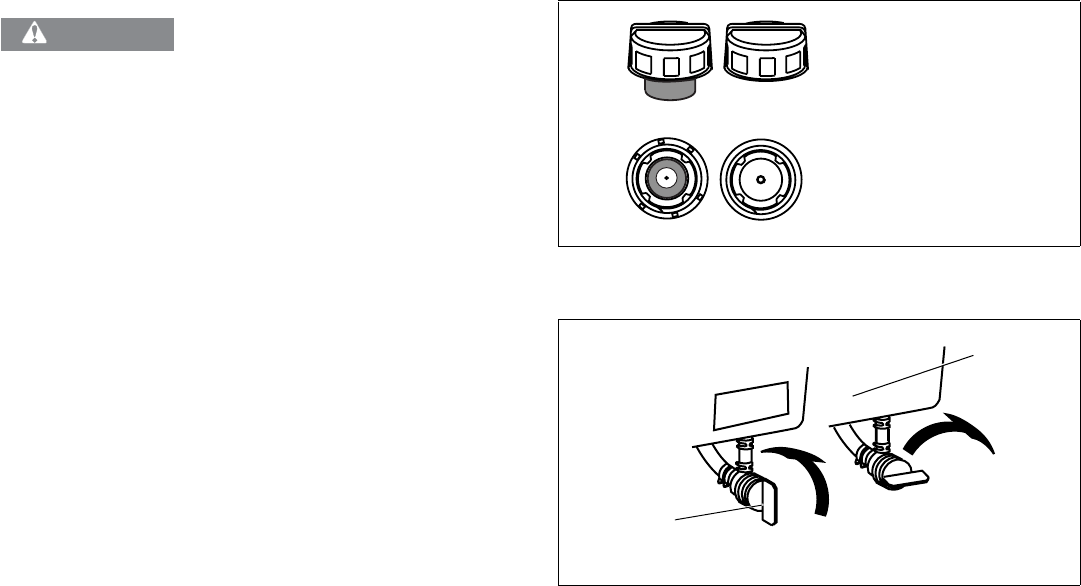 - 5. Replace fuel fill cap securely and wipe up spilled fuel before starting engine. If fuel is spilled DO NOT start engine. Move machine away from area of spillage. Avoid creating any source of ignition until fuel vapors are gone.