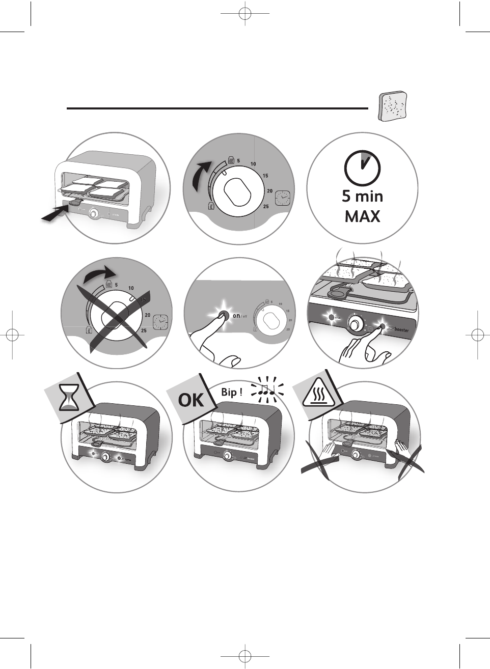 • En fin de cycle, si des aliments restaient coincés sur les résistances, débranchez, et attendez que l’appareil refroidisse avant de les