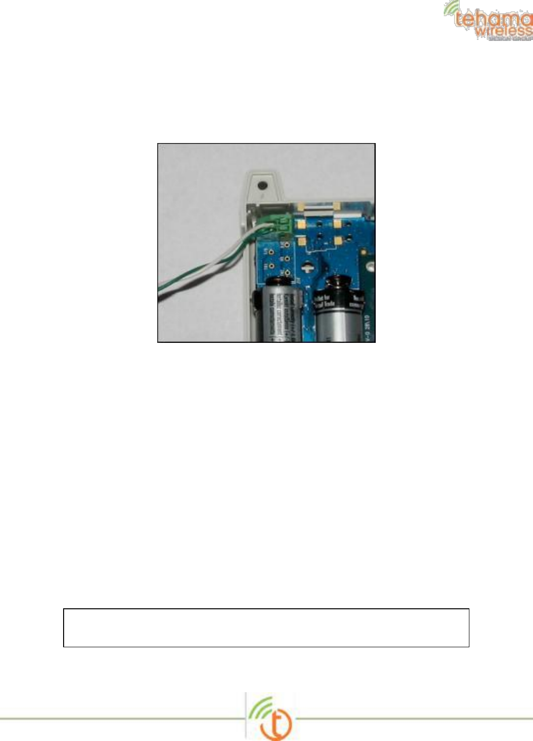 • Route the wire pair through the hole in the enclosure. Wrapping the wire around one