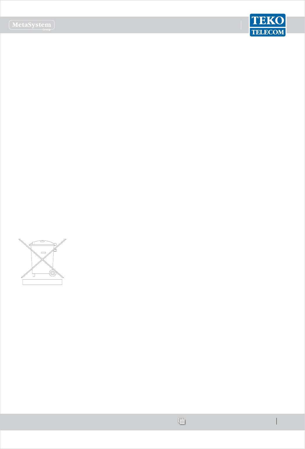 We TEKO TELECOM hereby declare that the products described in this technical handbook are manufactured by TEKO TELECOM S.p.A. Via