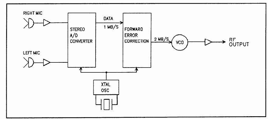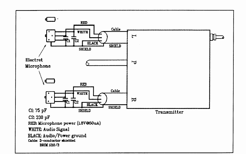 transmitted from a single antenna, two microphones cables, and a power cable. The