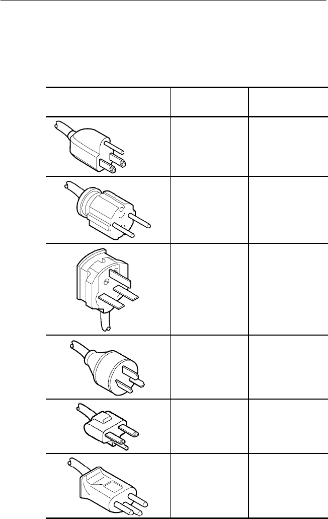 The following power cords are available.