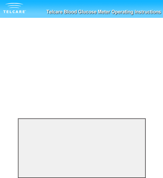 Your Telcare Blood Glucose Meter