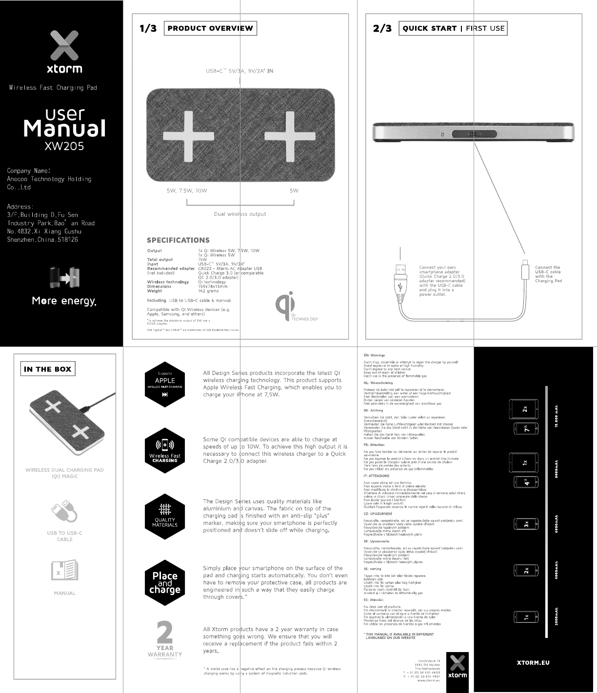 Telco Accessories XW205 Wireless Fast Charging Pad User Manual