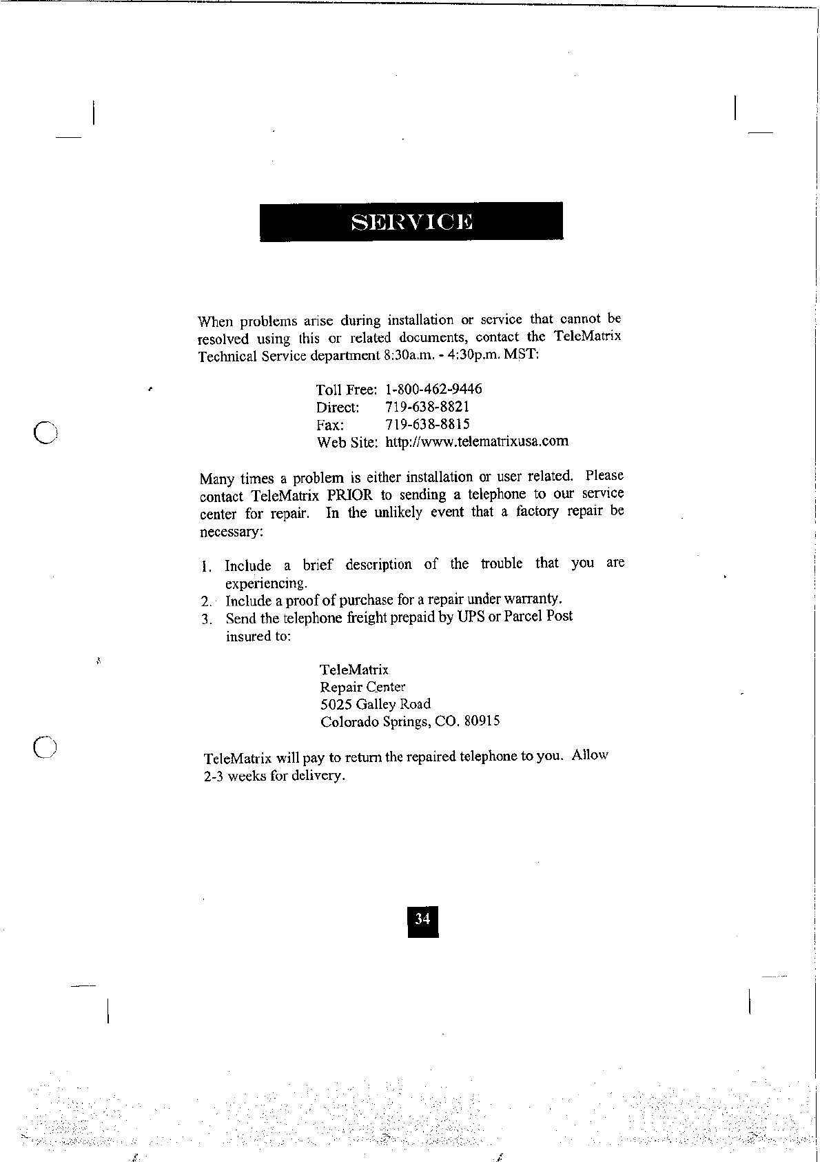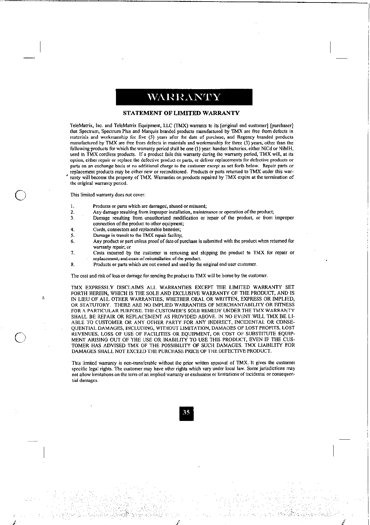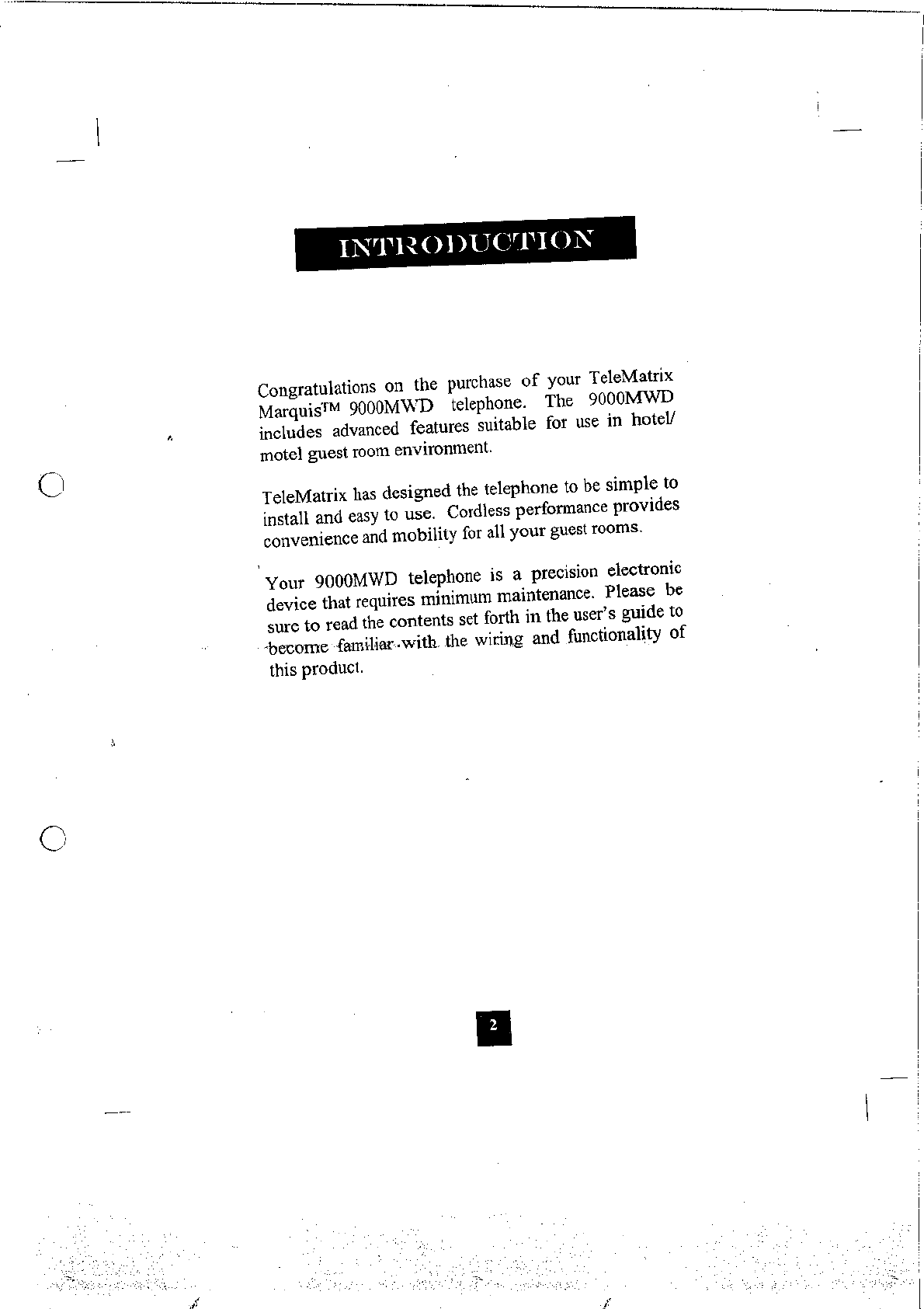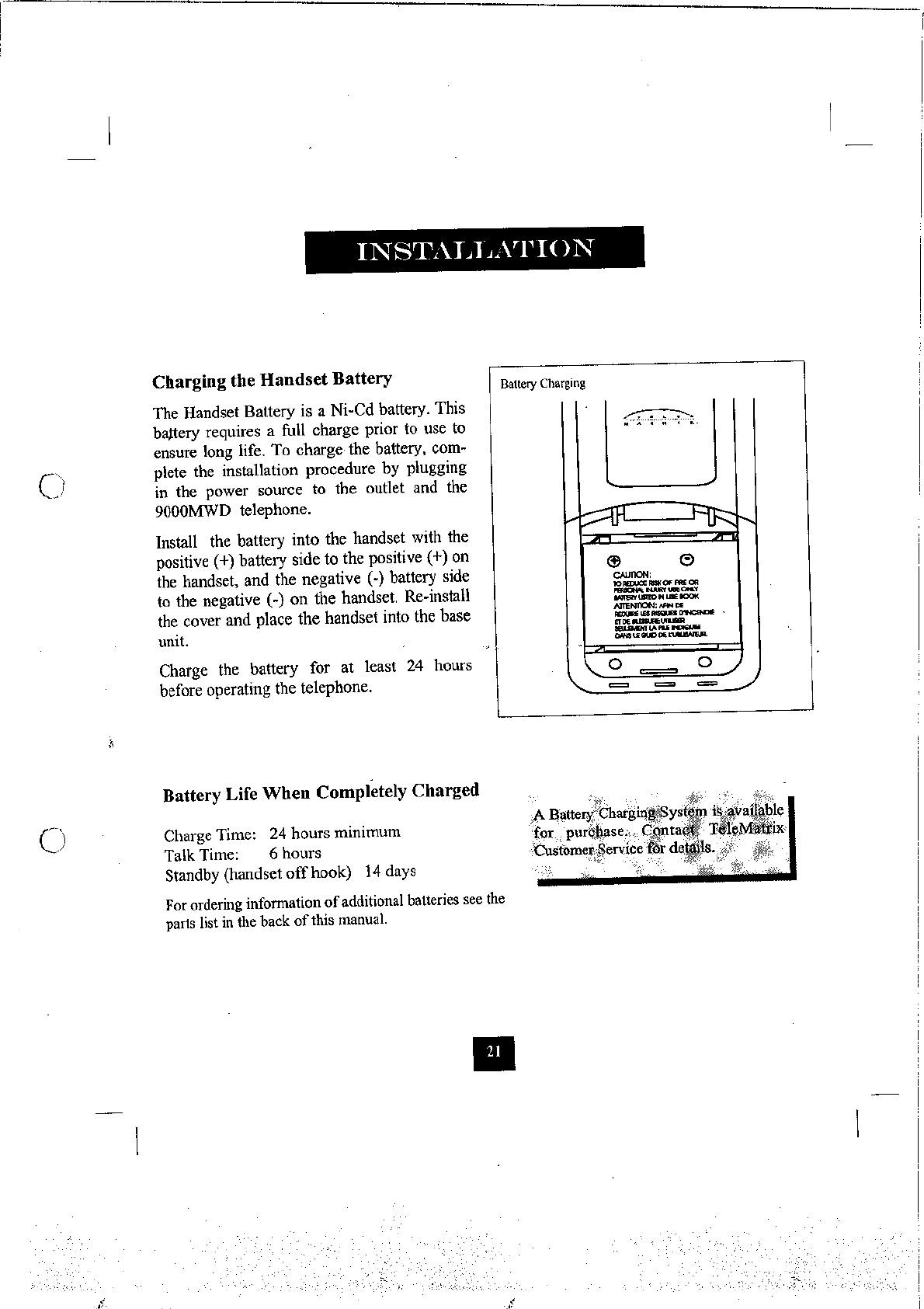 Tele Matrix Equipment N-9000MWD 900MHz DSSS Cordless Phone System User Manual