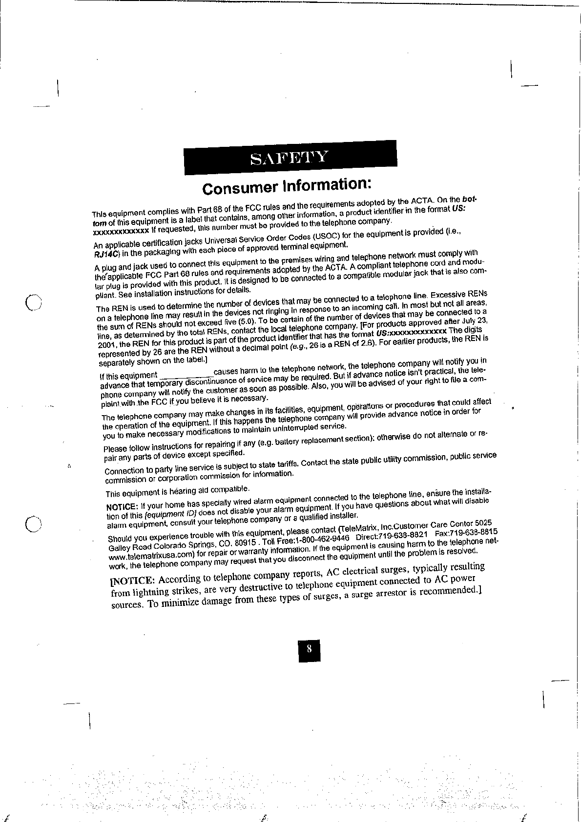 Tele Matrix Equipment, LLC 900MHz DSSS Cordless Phone System