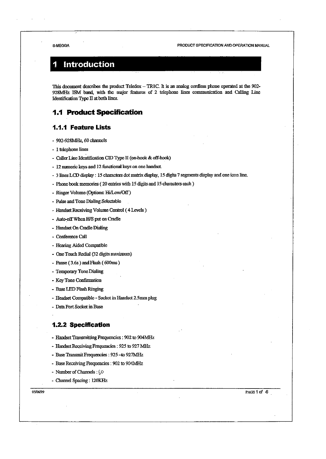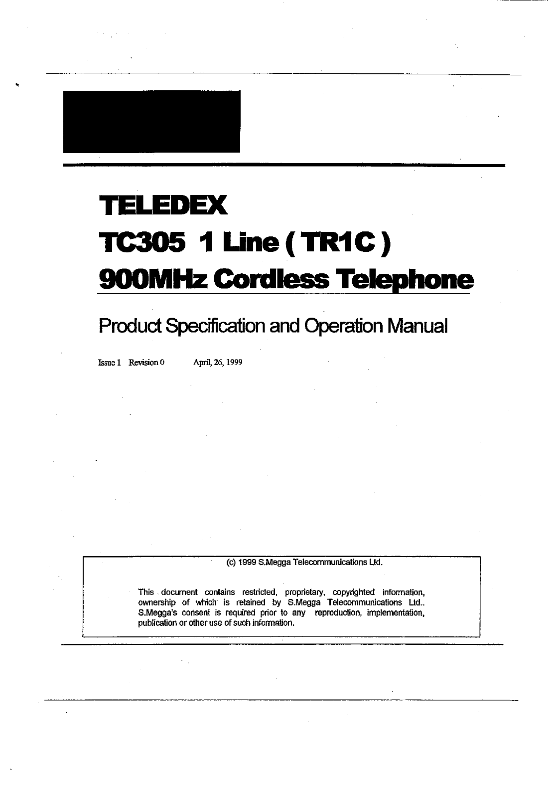 Teledex TR1C 900 MHz Cordless Phone User Manual
