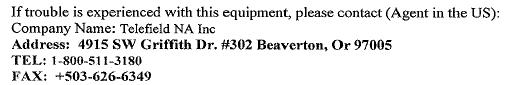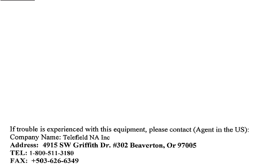 Changes or modications not expressly approved by Teleeld NA Inc. could void the user’s