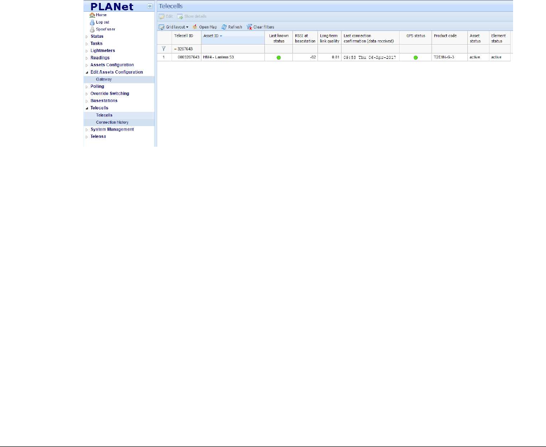 few hours. This can be confirmed by observing the Telecells Page within the User