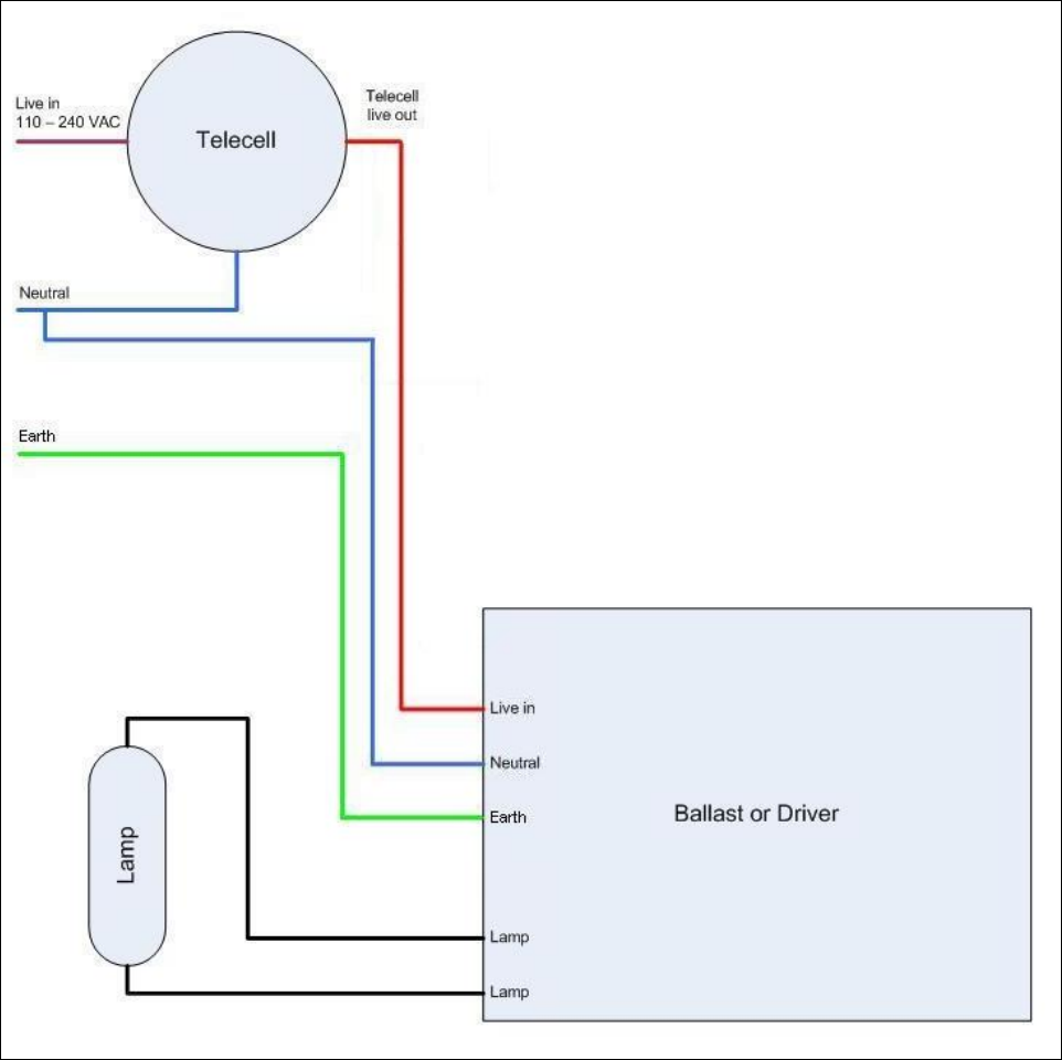 Figure 2: Wiring Diagram for Telecell - No Dimming Function