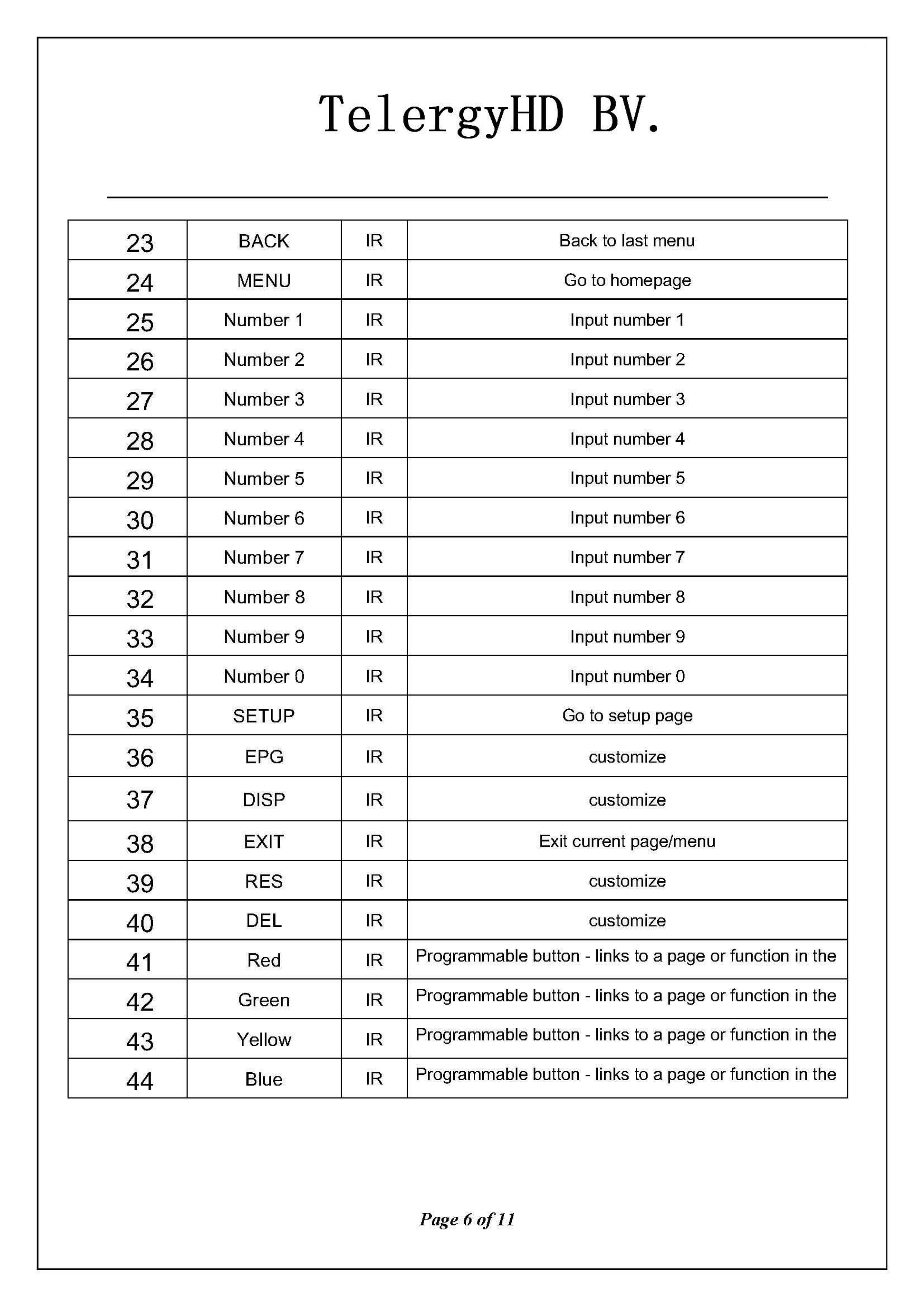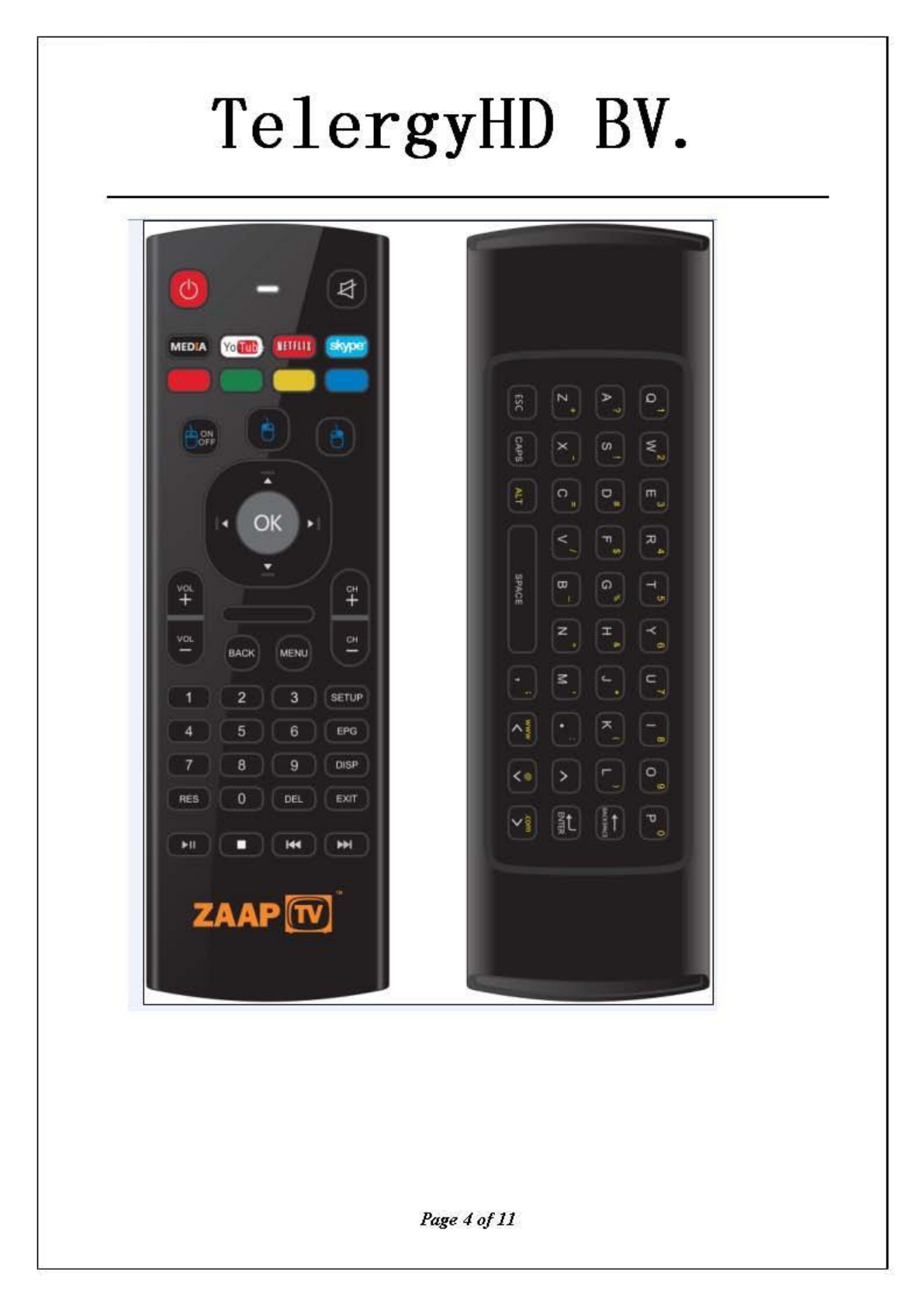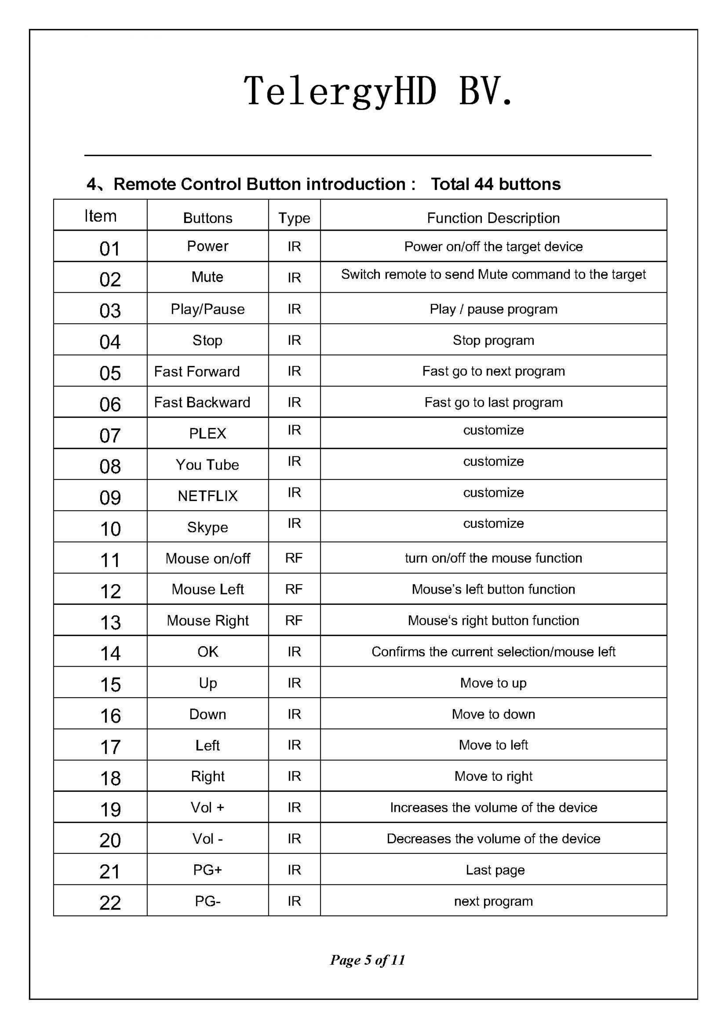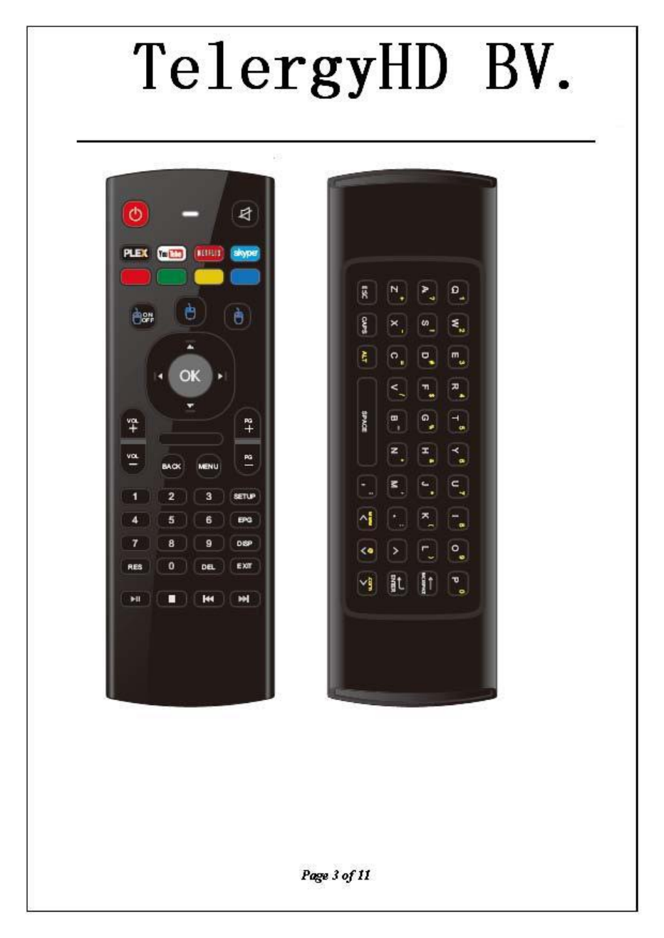 TelergyHD BV RF Remote Control