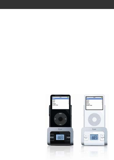 • Transmit your favorite songs on your iPod® to a nearby FM