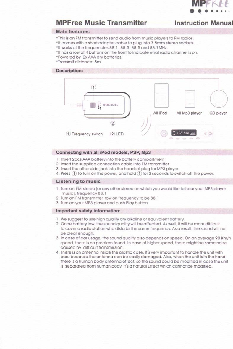 Teleway TMP3FT2 FM TRANSMITTER User Manual 2