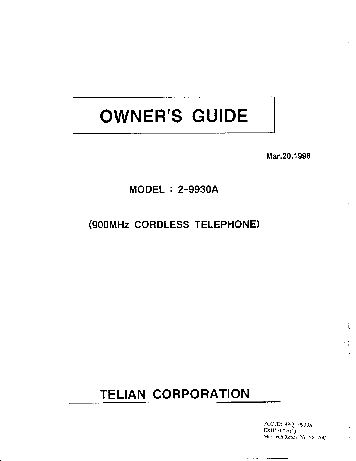 Telian 2-9930A 900 MHz Cordless Phone User Manual 50955