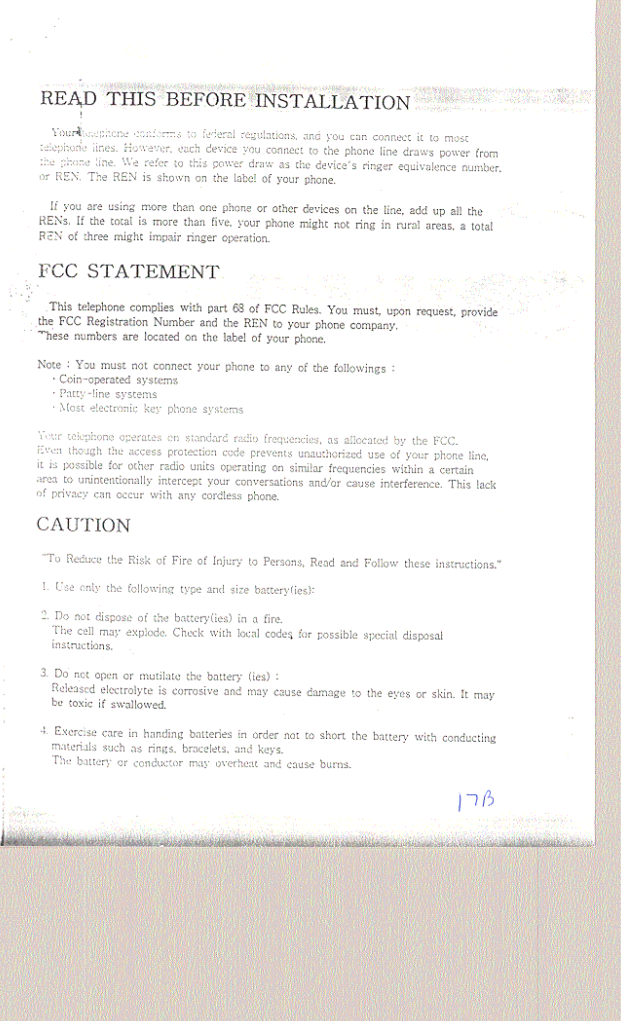 Telian BA909 900 MHz Cordless Telephone User Manual Instruction Manual