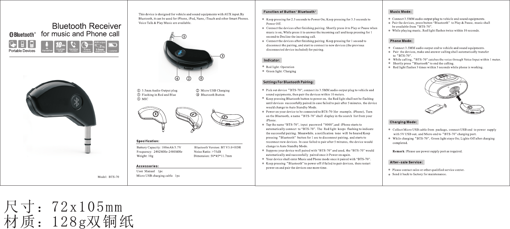 Telnova Technology BTS-70 BLUETOOTH RECEIVER User Manual