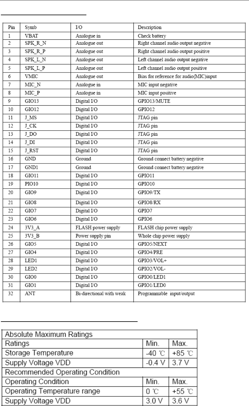 3.0 Volt-only. The module Supports Bluetooth v2.1. the Frequency range: 2402-2480MHz. The