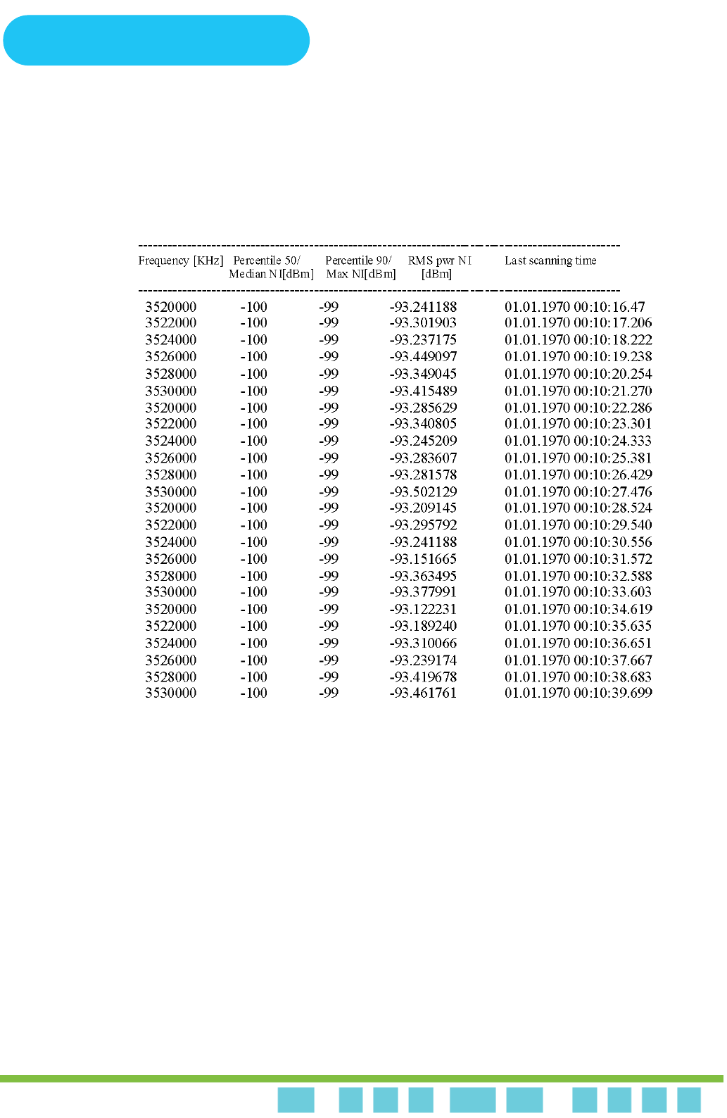 The following figure shows a results example for the Spectrum Analyzer.