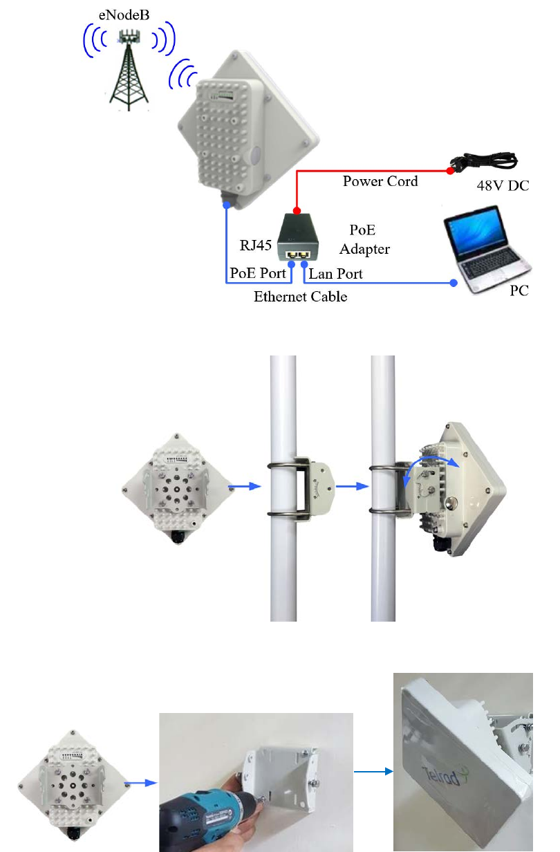 To power on the device, the outdoor CPE must use a 48V PoE integrated DC power supply