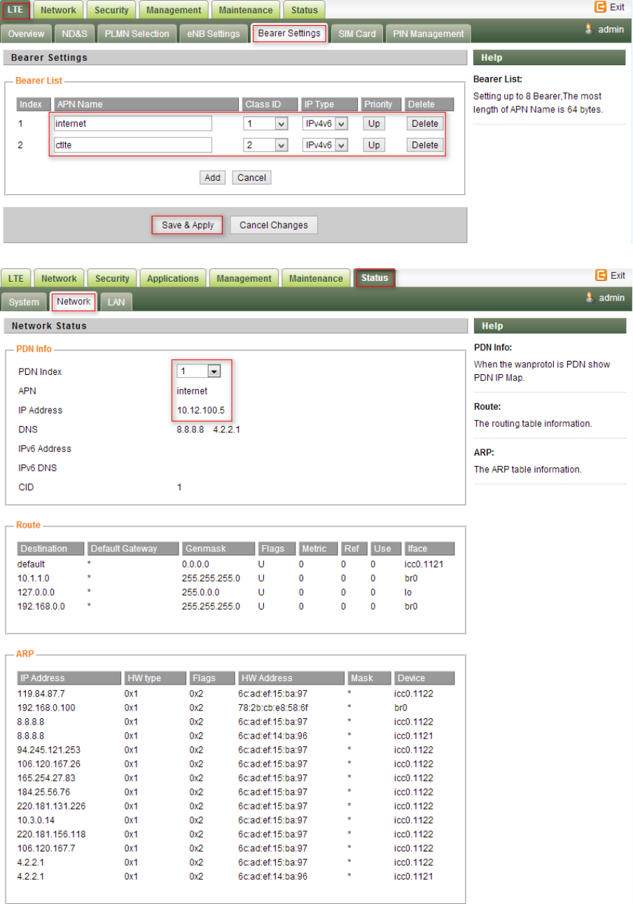 The operator’s PC which connected the LAN port of CPE will auto obtain the IP of APN Net
