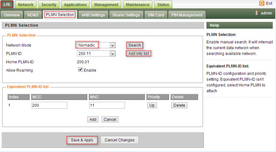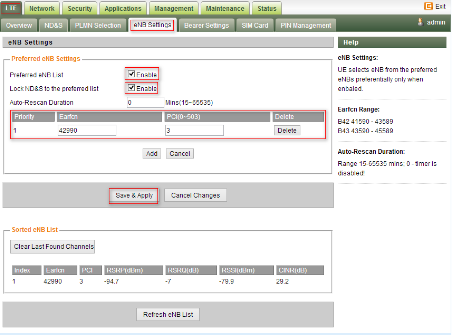 — >eNB Settings— >Enable Preferred eNB List —>Enable Lock ND&S to the preferred