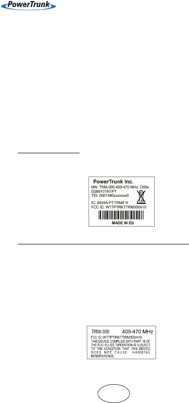 Use only accessories, batteries and antennas approved by PowerTrunk Inc.