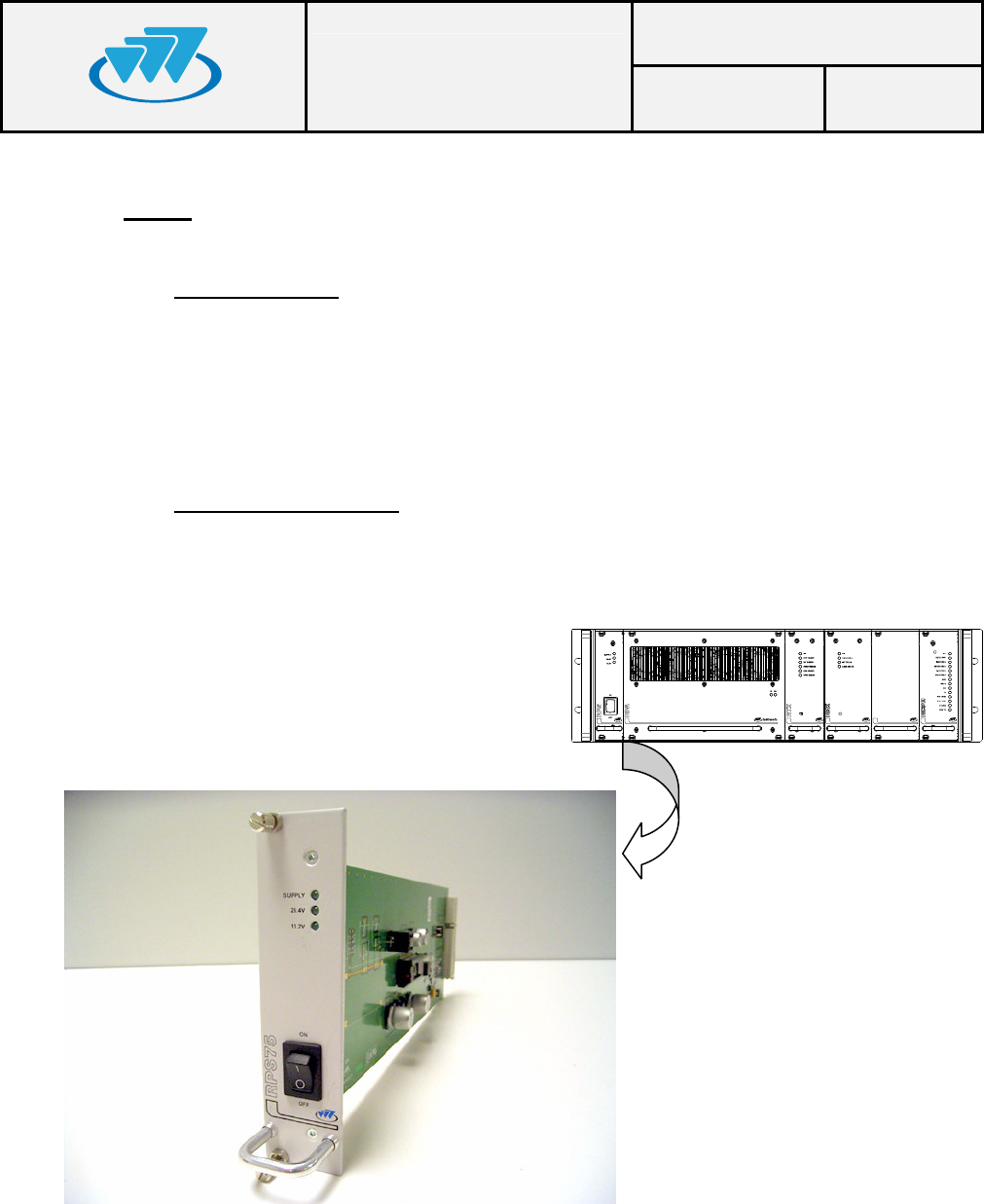 The RPA75 Module obtains from the BSR75 Back Plane the voltage levels