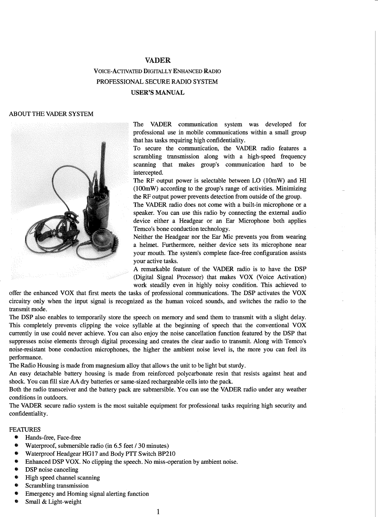 Temco Japan SR20A-01 Voice Activated Digitally Secure Professional Radio User Manual Manual