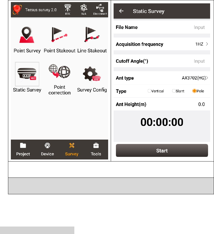 5. In Tersus Survey Nuwa, go to Survey->Static Survey