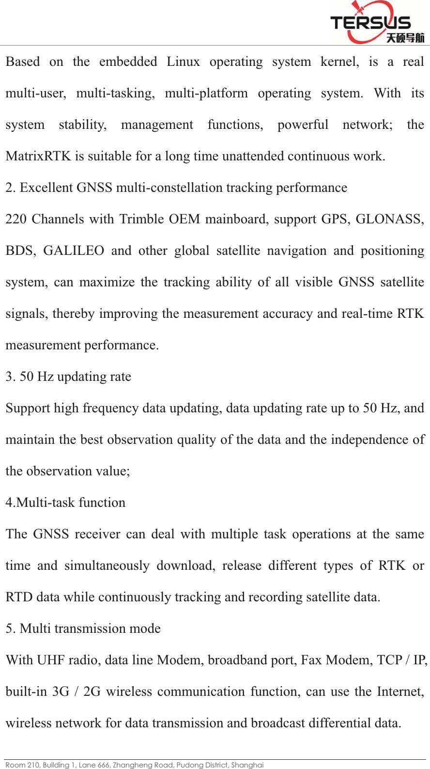 Tersus GNSS MATRIXRTK MatrixRTK GNSS Receiver User Manual 1