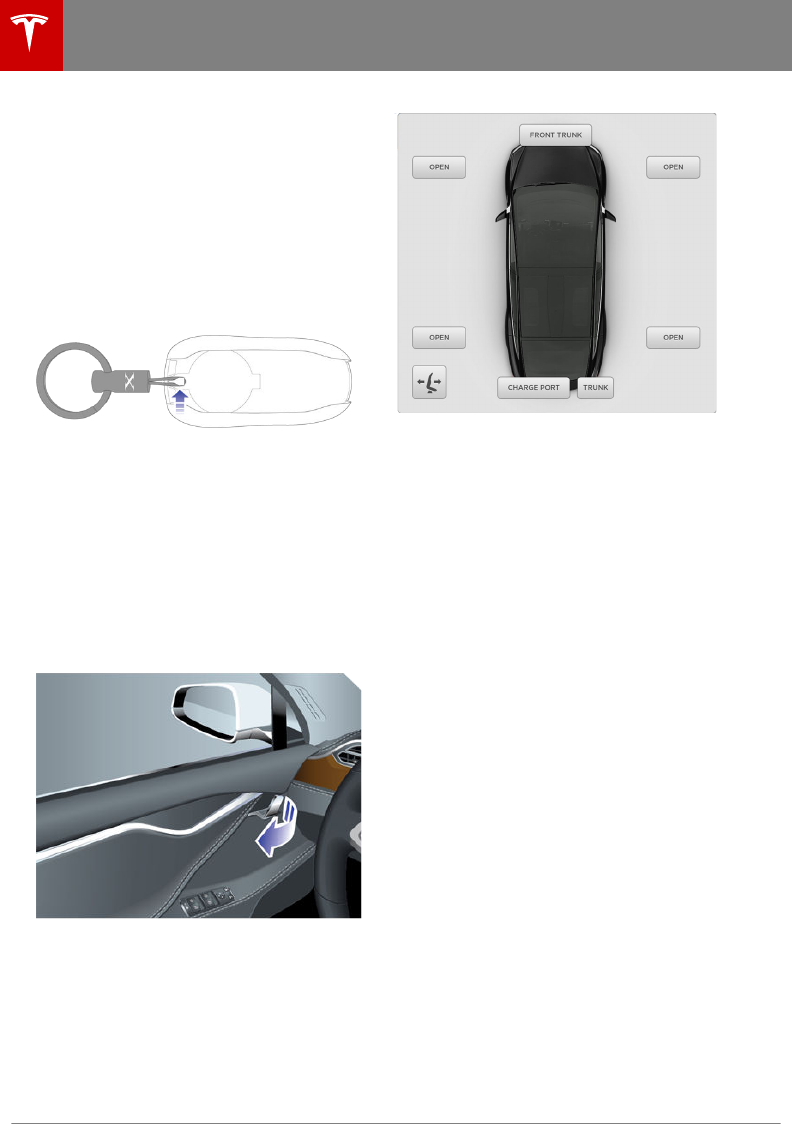 Keyless Locking and Unlocking4Using the Key4Opening Doors from the Interior6Opening and Closing Front Doors from Outside Model X7Opening and Closing Falcon Doors7Interior Locking and Unlocking8Child-protection Lock8Drive-away Locking9Walk-away Locking9Unlocking When the Key Doesn't Work9