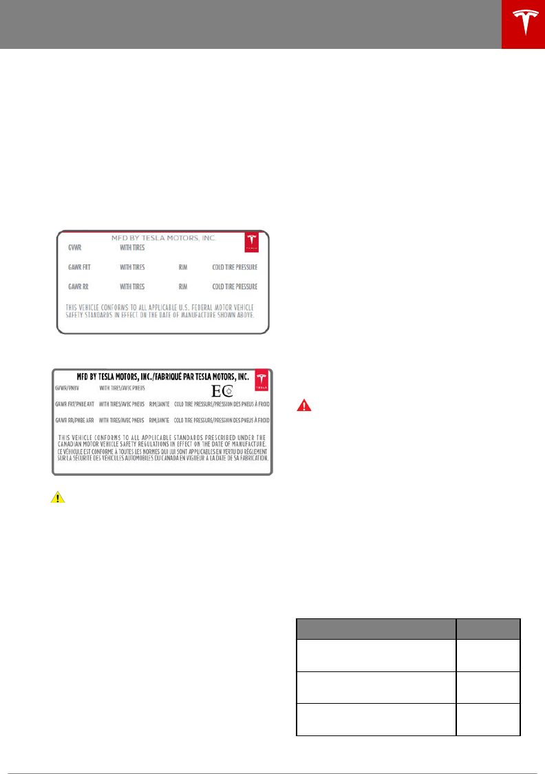 Tire and Loading Information label 154