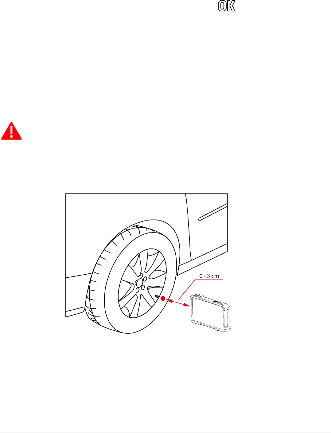 1. Put the device close to the tyre's valve as indicated in the figure, without