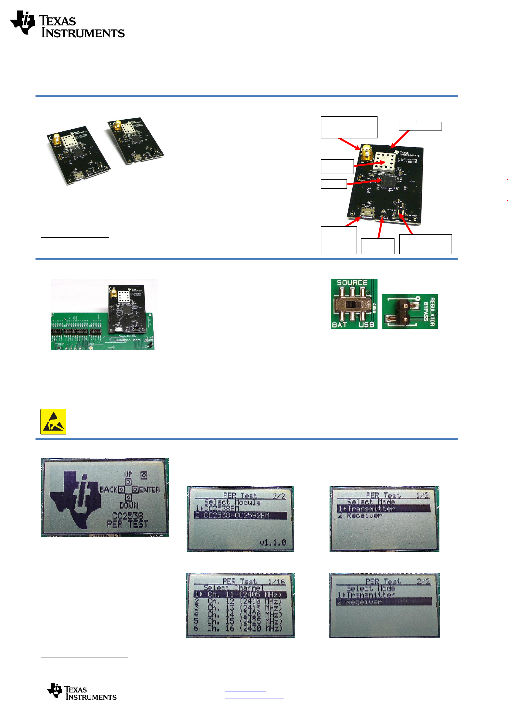 Texas Instruments Inc. The CC2538-CC2592EM is a development tool for TIs 2.4 GHz CC2538 radio MCU and CC2592 RF front end CC2538 Development Kit Quick Start Guide