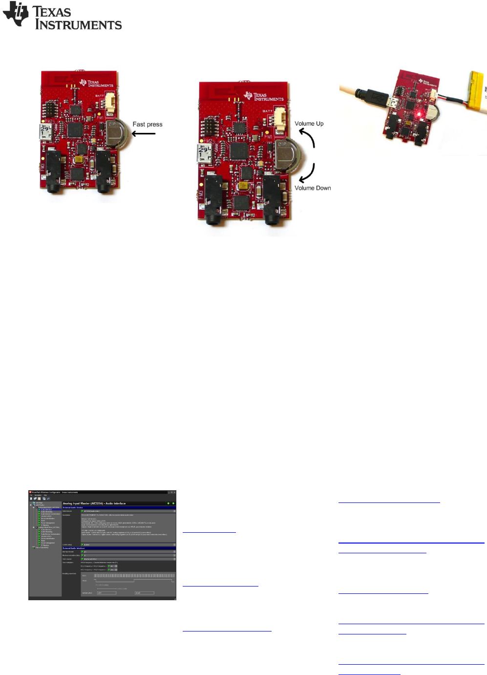 Texas Instruments 85XXHEADSET The CC85xxHeadset is a reference design for wireless audio headsets for development only and cannot be used in an end product. User Manual Development Kit