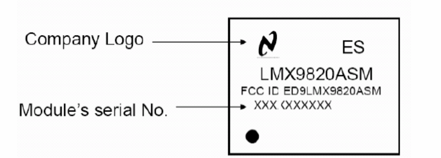 ("Contains FCC ID: XXXXYYYY" or "Contains Transmitter Module LMX9820A FCC